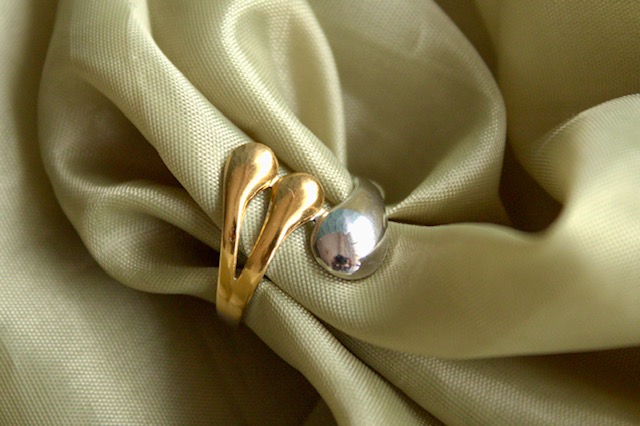 Anillo de acero inoxidable. Combinación de metales. AJUSTABLE