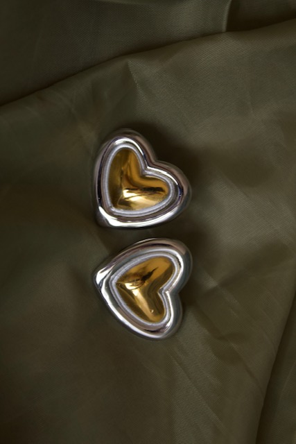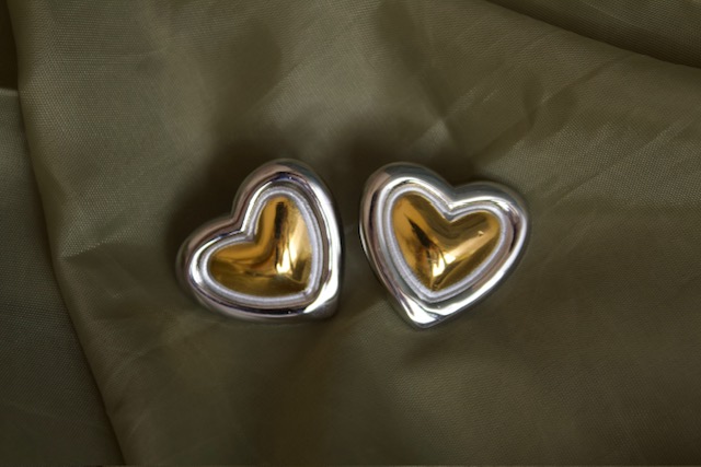 Aretes de corazón bicolor. Con estos aretes ya tienes el look completo