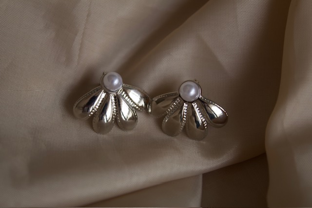Aretes de acero inoxidable. Si hay algo mejor que este color, es combinarlo con perlas y estos aretes lo tienen todo.