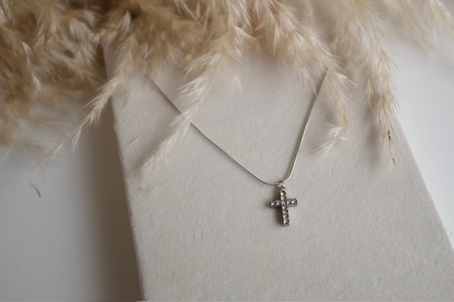 Cruz de acero inoxidable con circonias. Unisex.