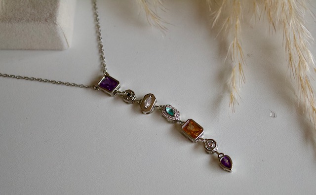 Collar de acero inoxidable con circonias en distintos colores y cortes. El detalle de elegancia que necesitas para los días más especiales.