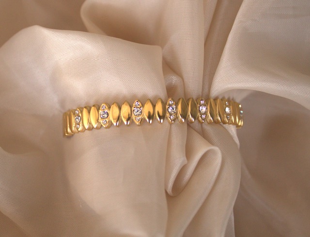 Brazalete de acero inoxidable con circonias en corte diamante.
